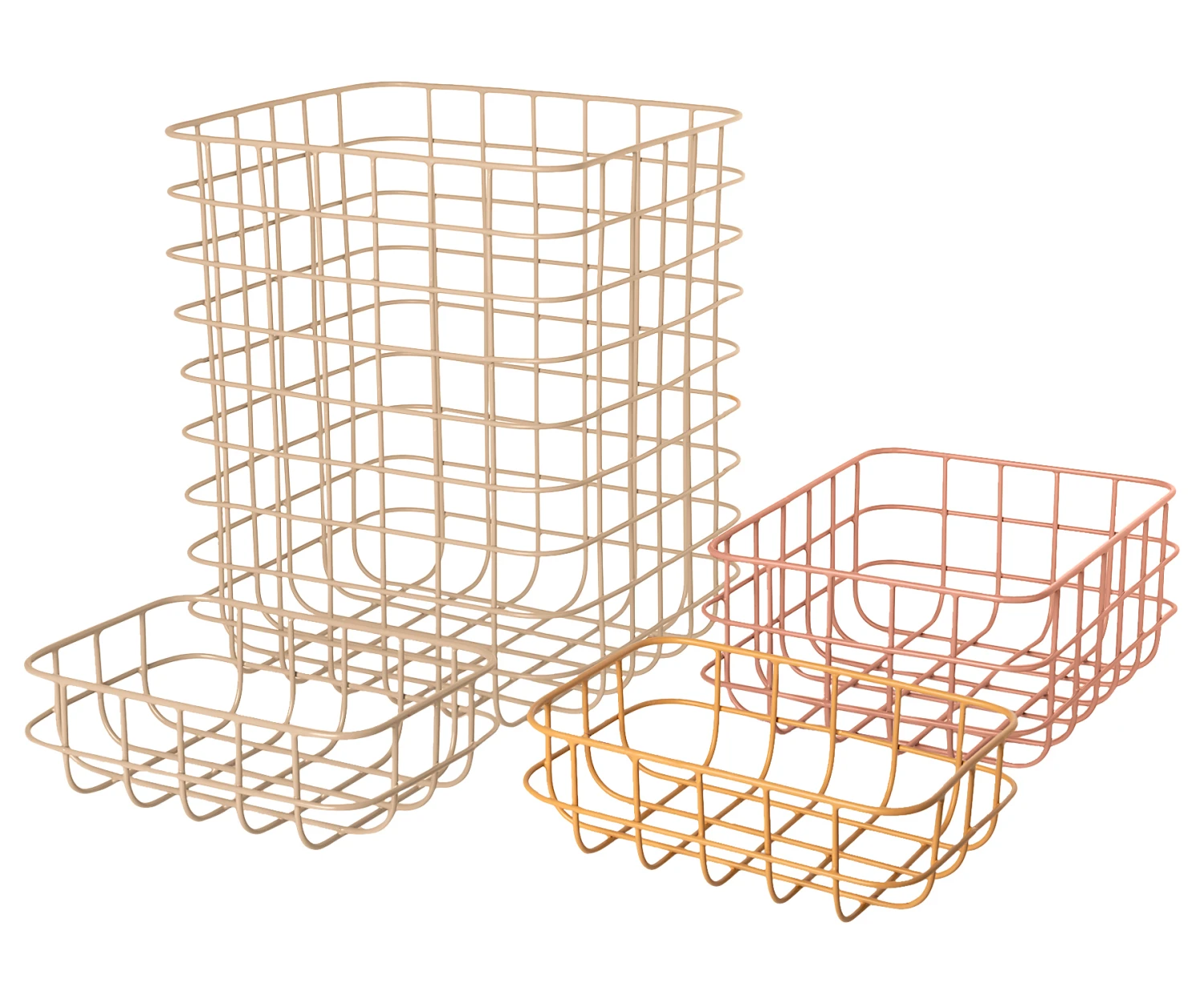 This 4 piece set of metal wire baskets from Maileg is a stylish way to keep your home tidy. The metal wire baskets come in 3 different sizes and colours and all pack together if needed. The 4 piece set consists of: