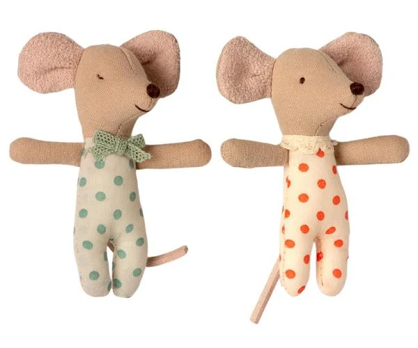 Maileg is a multi award-winning Danish design company which makes unique quality, long-lasting, charming products, which merge modern Scandinavian design with storybook whimsy and meticulous attention to detail. Maileg offers a world where matchboxes are beds for mice, adored by both adults and children, cherished and often passed on from generation to generation. They make a wonderful gift. The Baby Twins are lying nicely in their sleeping bag and come in the popular decorated handmade matchbox – let their imagination run wild! Founded in 1999, Maileg is a Danish toy brand founded by illustrator and designer Dorthe Mailil. Known for their imaginative, playful toy designs that range from mice in matchboxes, to giant bunnies, alongside all the accessories and clothing to dress up her creations. The designs skilfully blend the Scandinavian aesthetic with the tradition of animal soft toys, making Maileg so popular amongst children and their parents. Brand Maileg