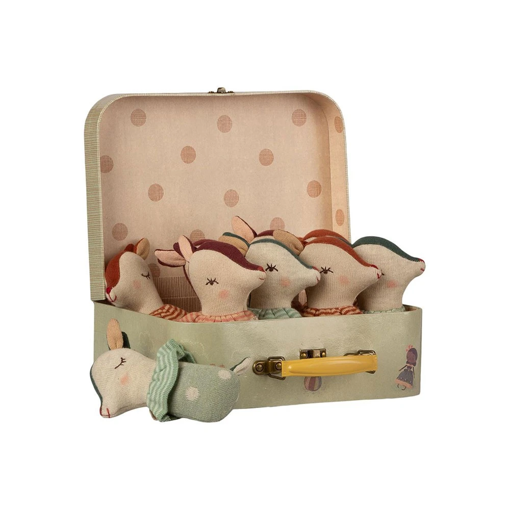 This handmade suitcase with an adorable print from Maileg is perfect for your little one to keep all their little treasures, or for you to store your most precious memories (their first pajama, their pacifier, their dudu ..).