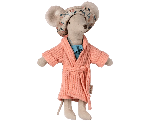 Size: Mum/ Dad mouse 3+ years This soft bathrobe is essential after a warm bath and to bring to the beach. It fits mice size, mum and dad.