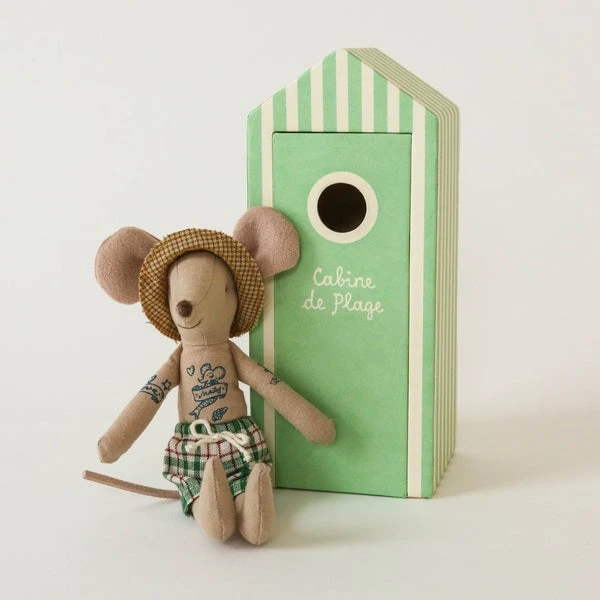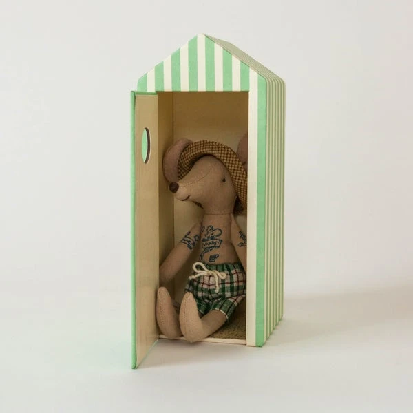 Vacation time. This mouse ia ready for a day at the beach, with all needed accessories and a beautiful striped beach house. Maileg is a brand of charming Danish-designed toys created to inspire our children’s favorite playtime stories. By bringing storybook whimsy to everyday moments, Maileg toys help children explore the pure and simple wonder of imagination. Beloved for their heartwarming personalities, Maileg toys show playfulness and charm in every last detail. Theirs is a timeless world filled with beautiful accessories and settings to be collected, cherished and shared with friends and family for generations. Size: Mother/Father mouse Height: 17 cm Width: 7 cm Age: All ages Wash: 30°C Material: Cotton Filling: Polyester/Pe Pellets