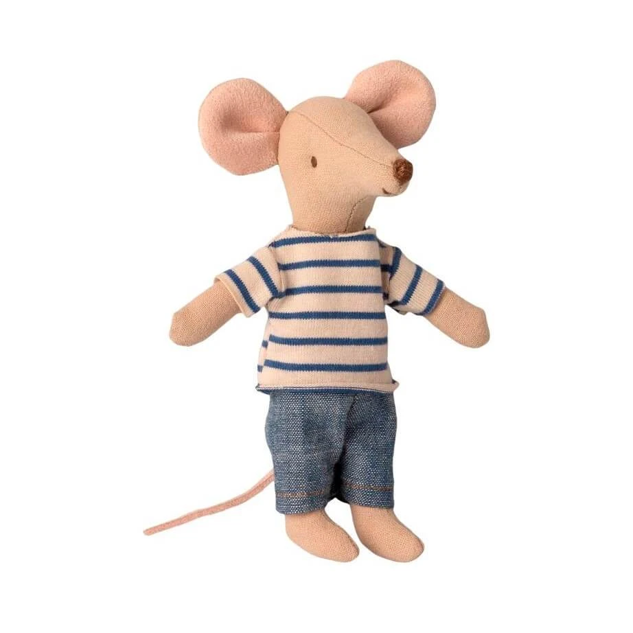 A comforting companion for children big or small, you always have a friend in a Maileg matchbox mouse. This little chap is dressed in his very best breton top and is ready for all kinds of adventure. He will play and play all day before its time to be tucked into his cozy little bed once more. Dimensions: mouse 12cm, matchbox 14 x 8 cm Material: mouse- cotton, matchbox- card Suitable for ages 3+. Machine washable at 30º Founded in Denmark by designer and illustrator Dorthe Maili, Maileg have been providing timeless toys you won’t want to tidy away since 1999. Six time winner of the biannual Formland award for their unique nordic design, Maileg care not only about the quality of their product but also for the impact they have on the environment and are working towards the 17 Sustainable Development Goal set out by the UN to keep giving back to the world we live in.