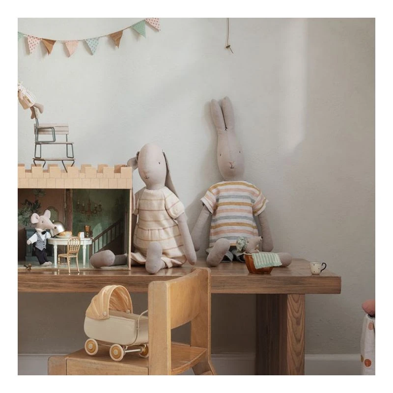 Founded in 1999, Maileg is a Danish toy brand founded by illustrator and designer Dorthe Mailil. Known for their imaginative, playful toy designs that range from mice in matchboxes, to giant bunnies, alongside all the accessories and clothing to dress up her creations. The designs skilfully blend the Scandinavian aesthetic with the tradition of animal soft toys, making Maileg so popular amongst children and their parents.