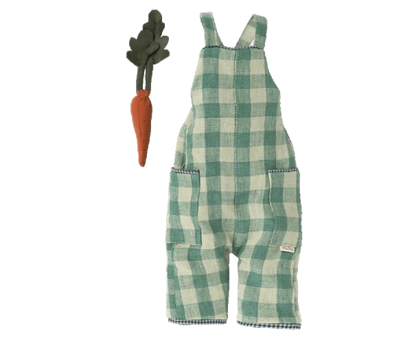 The bunny & rabbit collection is made of soft natural linen & cotton fabric – which gives a lovely hand feel and look. This rabbit wears overalls and has a small soft carrot in the pocket. Size: Bunny/Rabbit 3 Height: 49cm Material: Cotton /Linen Washing Instruction: 30 C Suitable for all ages