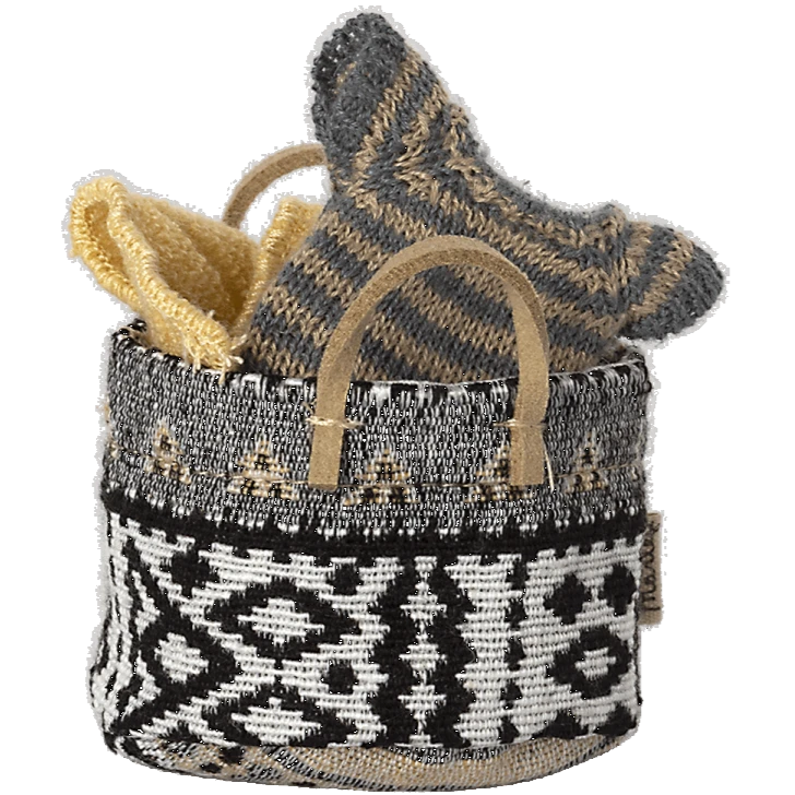 Cesto piccolo per la Casa dei Topolini – Bianco e Nero Dettagli: materiale: cotone e lino dimensioni: 23 cm marca: Maileg