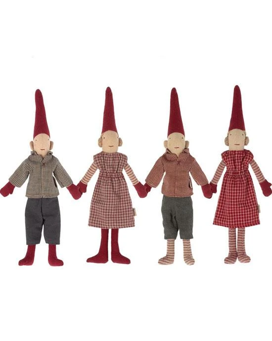 Climbing pixies – a collection of 4 individual pixies, all dressed up in nice Christmas clothes. They all have magnets in their hands and feet so they can climb and decorate everywhere. Measure: 25cm tall Lovingly crafted from cotton, adorned in a cute festive outfit and just waiting to be friends. Please note: Includes one figure. There are four Pixy Figure designs to choose from -please indicate which doll you would prefer otherwise the figure you receive will be selected at random. About Maileg In a busy world of bright lights, bells and whistles, where new stories are continually impressed upon us… Maileg is a world in which matchboxes can be beds for mice; princesses make perfect teatime companions; and adventures can be found on a friendly forest walk. It is a world where cats and mice are friends. Ours is a world of childhood imagination – and this is a world we value. Maileg (pronounced My’lye) is a brand of charming Danish-designed toys created to inspire our children’s favorite playtime stories. By bringing storybook whimsy to everyday moments, Maileg toys help children explore the pure and simple wonder of imagination. Beloved for their heartwarming personalities, Maileg toys show playfulness and charm in every last detail. Theirs is a timeless world filled with beautiful accessories and settings to be collected, cherished and shared with friends and family for generations.