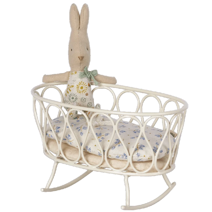 Culla per topolini e coniglietti – My Blue Una bellissima culla con tessili blu e fiori. Dettagli: materiale: metallo e cotone dimensioni: 14 x 9 cm misura: Mouse età consigliata: 3+ anni topolini e coniglietti acquistabili a parte marca: Maileg