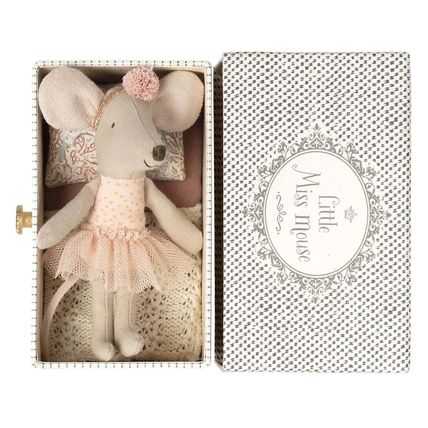 It is important to have a place to rest after a dance lesson. This little mouse from Maileg comes in a beautiful box that can be used as a day bed. Size: Little sister/ brother Height: 11 cm Age: + 3 Years Washing instruction: 30 degrees Material: Cotton/Polyester