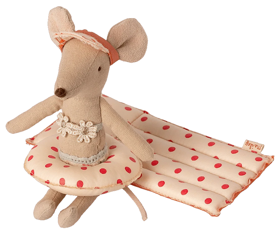 Vacation time. A float made in coated fabric for an authentic look. It is not water proof, so only play on dry ground… only in your imagination it can float on water. This set fits mice in size little brother/sister and baby. Product details Size: Little sister/brother Height: 1 in Width: 7 in Age: 3 YR + Wash: 30°C Material: Cotton Filling: Polyester Maileg (pronounced My’lye) is a brand of charming Danish-designed toys created to inspire our children’s favourite playtime stories. By bringing storybook whimsy to everyday moments, Maileg toys help children explore the pure and simple wonder of imagination. Beloved for their heartwarming personalities, Maileg toys show playfulness and charm in every last detail. Theirs is a timeless world filled with beautiful accessories and settings to be collected, cherished and shared with friends and family for generations.