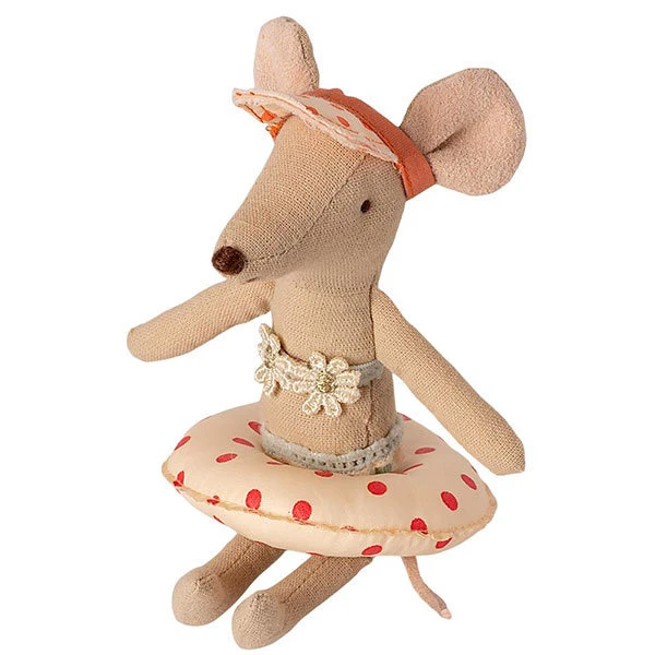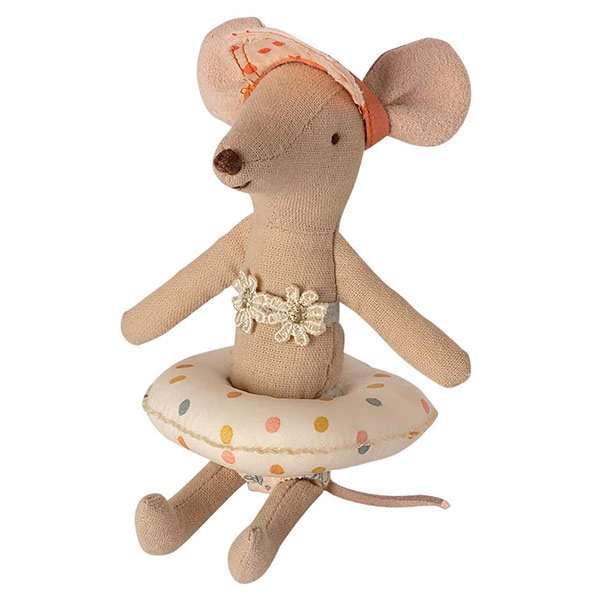 This float Small Mouse Red dot should not be missed when the Maileg mice and rabbits go out to the sea, the beach and the pool. The swimming ring is suitable for baby mice, little brother and little sister mouse. The swim ring is made of coated cotton and therefore not waterproof. But floating on dry land is also super nice!