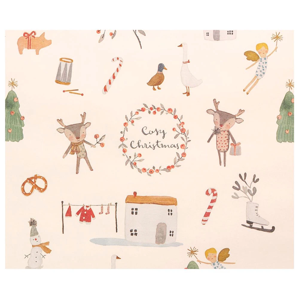 The beautiful decorated giftwrap is made of 100% FSC certified paper. Add one of the beautiful Maileg gift ribbon and gift tag to complete the gift. The gift wrap comes with 10 meter on one roll. Width 55 cm .