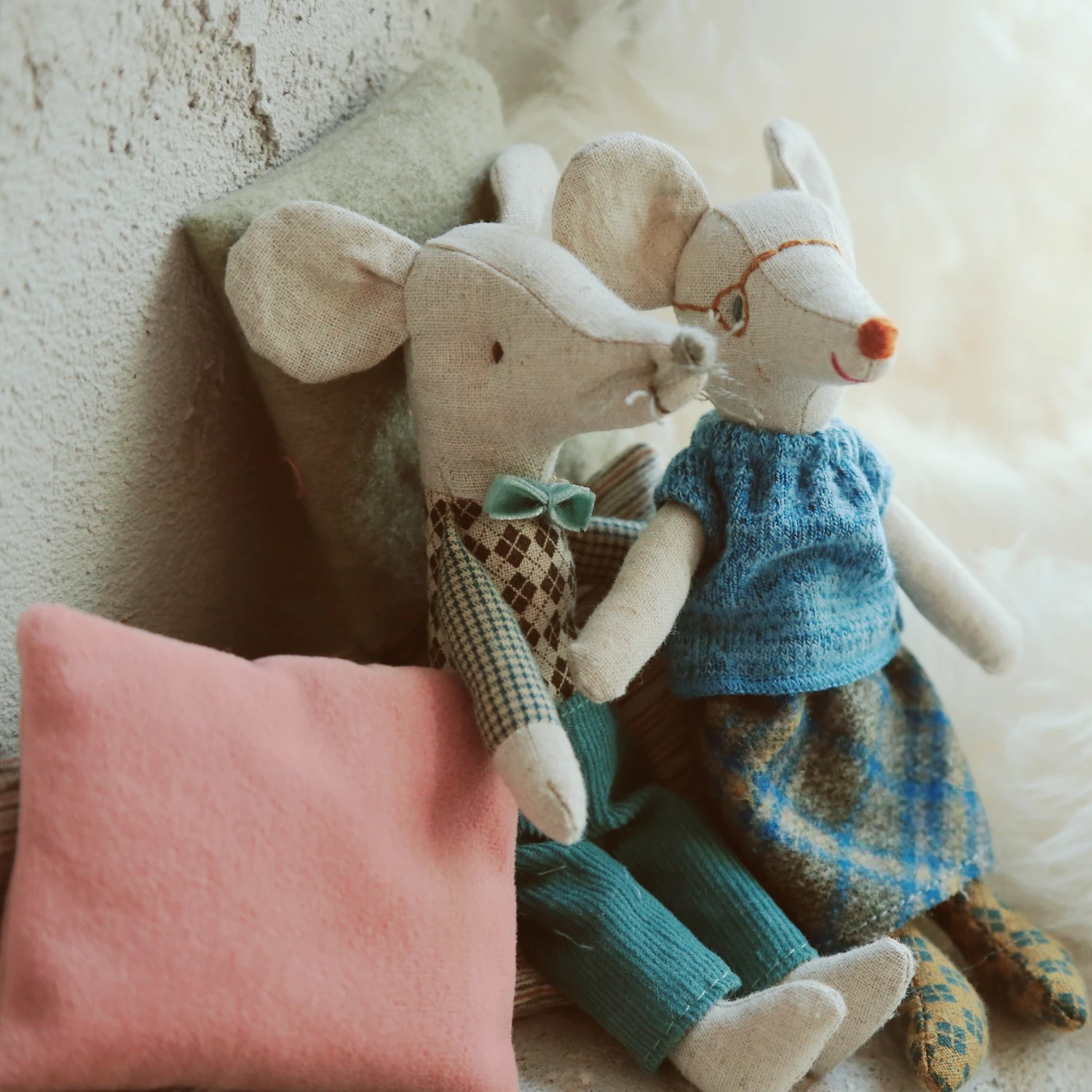 Items may vary slightly due to maileg regularly changing designs, mice height : 16 cm approx, age: 0+, unique design with two maileg mice in their outfits and bedding included, made from cotton and linen in a cardboard box.