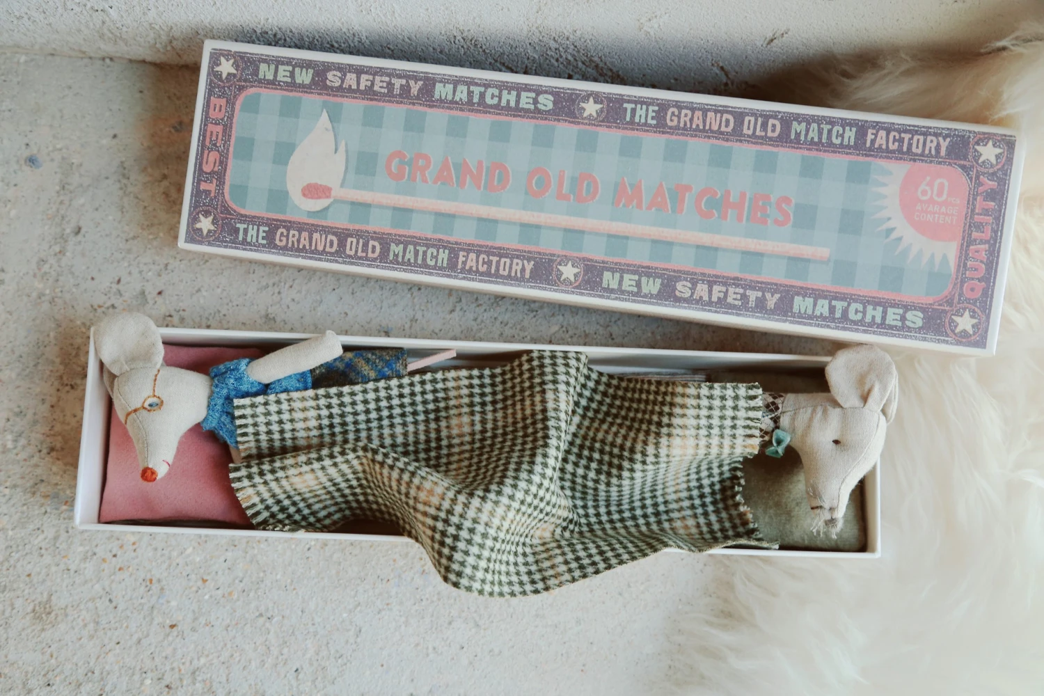 We all know it is grandma and grandpa who really love to spoil! Grandma and grandpa mouse come in their grand old matchbox that is furnished with a mattress, pillow and blanket. They are always there to play with and to be tucked in when the sun goes down. A unique gift that will be loved. Free gift wrapping & fast delivery, perfect!