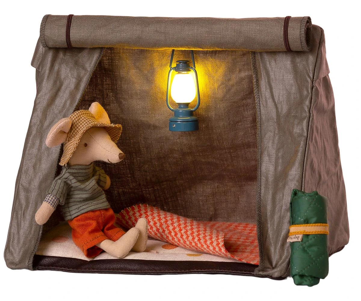 Take your mice along for a sleep-over under the stars in the easy fold-up tent. The blanket will keep your friends warm during the night. The outer fabric has a coated surfase for a more authentic look.