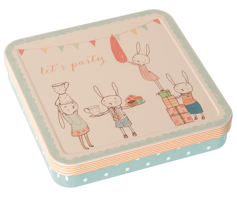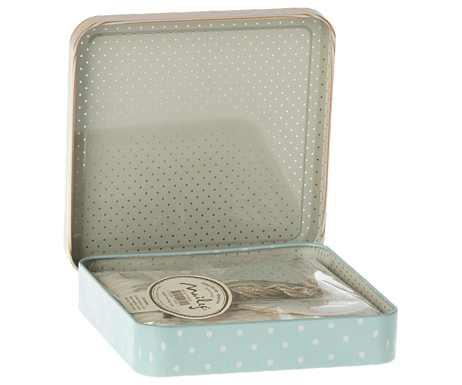 The perfect party kit for a Happy day. This set includes everything you need to decorate a beautiful table: Napkins, a garland and confetti hearts. Product details Height: 2 cm Width: 4 cm Age: For decoration only Washing instruction: N/A Material: Paper/Cotton/Metal Maileg (pronounced My’lye) is a brand of charming Danish-designed toys created to inspire our children’s favourite playtime stories. By bringing storybook whimsy to everyday moments, Maileg toys help children explore the pure and simple wonder of imagination. Beloved for their heartwarming personalities, Maileg toys show playfulness and charm in every last detail. Theirs is a timeless world filled with beautiful accessories and settings to be collected, cherished and shared with friends and family for generations.