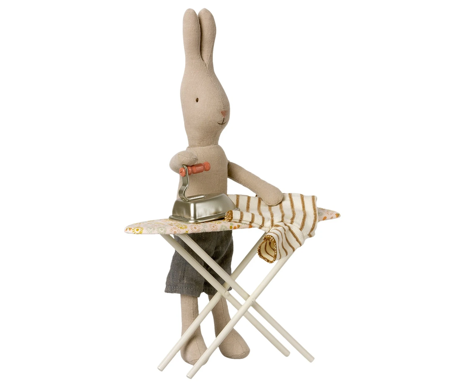 Every respective household has an ironing board and an iron in the laundry room. This will make the play even more real and authentic. The set is made in metal and the ironing board is covered with unique Maileg fabric. Product details Height : 14 cm Age: 3 years & up Washing instruction: Surface wash Material: Metal / Cotton Maileg (pronounced My’lye) is a brand of charming Danish-designed toys created to inspire our children’s favourite playtime stories. By bringing storybook whimsy to everyday moments, Maileg toys help children explore the pure and simple wonder of imagination. Beloved for their heartwarming personalities, Maileg toys show playfulness and charm in every last detail. Theirs is a timeless world filled with beautiful accessories and settings to be collected, cherished and shared with friends and family for generations.