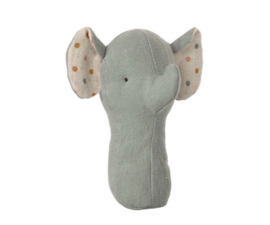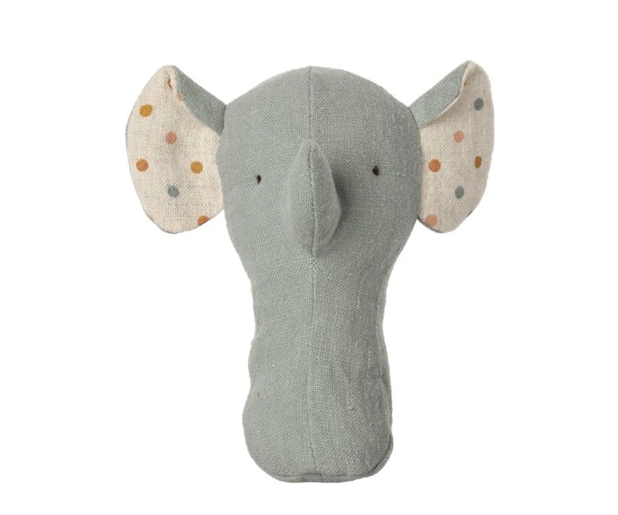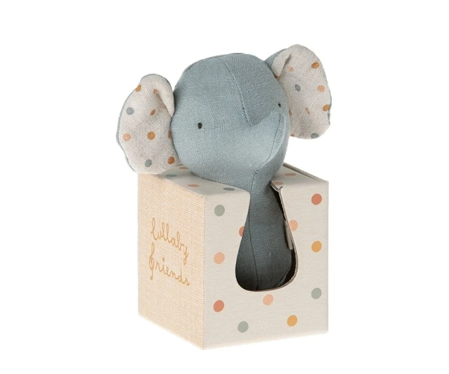 Dieser Mini-Elefant ist perfekt auf kleine Babyhände abgestimmt. Es macht jede Menge Spaß den kleinen graublauen Kerl mit seinen gepunkteten Ohren zu schütteln und den Geräuschen der eingebauten Rassel zu lauschen. Die liebe Elefantenrassel ist für alle Altersgruppen geeignet und somit schon ein passendes Geschenk für Neugeborene. Wie praktisch dass sie auch gleich in einem schönen Geschenkkarton verpackt ist – siehe Abbildung. Abmessung: H 13cm Material: Leinen Füllung: recyceltes Polyester Granulat Farbe: helles Grünblau.
