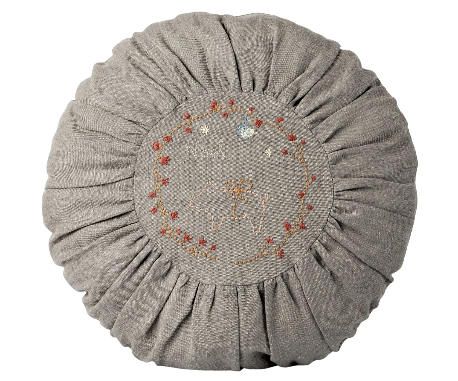Cushion with a cover made in natural linen and beautiful embroidered details. Product details Size: n/a Height: 40 cm Width: 40 cm Age: Decoration only Wash: 30°C Material: Linen Filling: Recycled polyester Maileg (pronounced My’lye) is a brand of charming Danish-designed toys created to inspire our children’s favourite playtime stories. By bringing storybook whimsy to everyday moments, Maileg toys help children explore the pure and simple wonder of imagination. Beloved for their heartwarming personalities, Maileg toys show playfulness and charm in every last detail. Theirs is a timeless world filled with beautiful accessories and settings to be collected, cherished and shared with friends and family for generations.