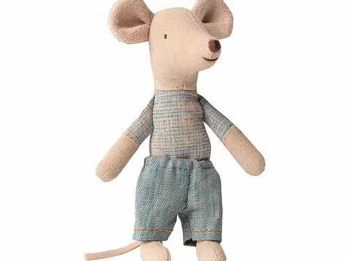 little brother mouse is too cute with his small pants on. His bed is always ready and he sleeps tight in his little matchbox. The beautiful bedlinen is made of soft fabrics with beautiful print.