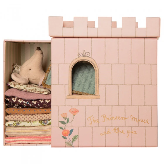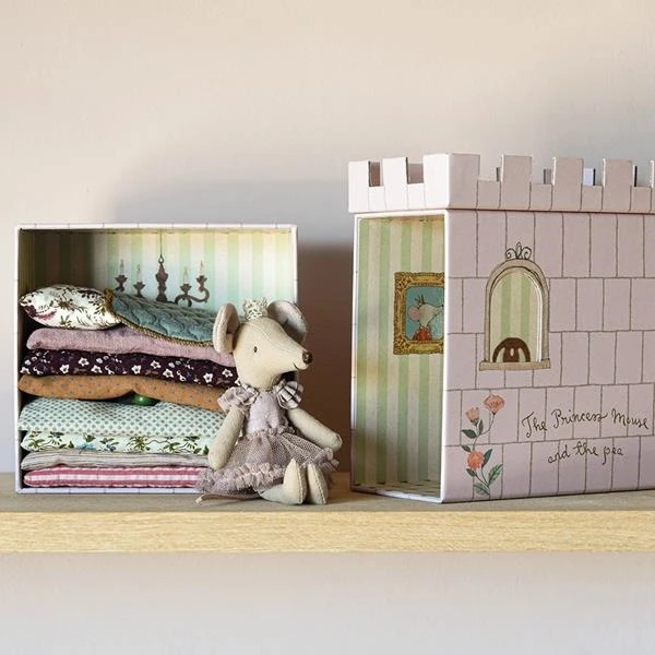 Once upon a time … this is how most good fairy tales begin. This Maileg game was inspired by the famous fairy tale Princess on the Pea. Includes a paper castle with mattresses, a pea and a little princess mouse: the older sister dressed in a beautiful princess dress and a crown. Even if you sleep on a large pile of mattresses, if there is only one small pea between them, you will not be able to close your eyes all night. This set is a beautiful gift idea for a little Maileg fan.
