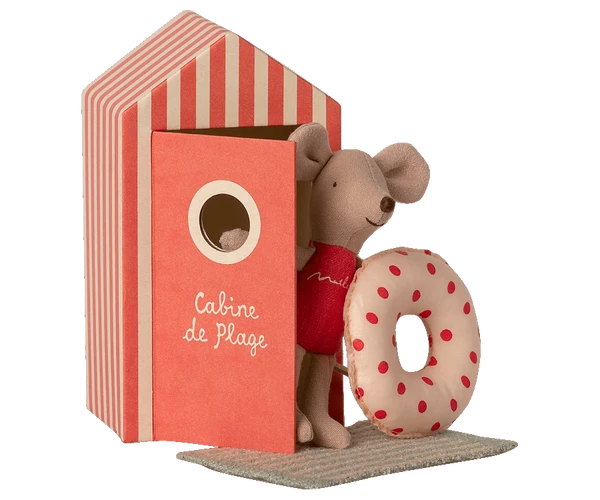 Vacation time. This mouse is ready for a day at the beach, with all needed accessories and a beautiful striped beach house. As she is the smallest family member, she, of course, has a float to keep her safe. Item No.: 16-1721-01 Size: Little sister/brother Height: 11 cm Recommended age: +3 Year Wash: 30°C Material: Cotton/Linen Filling: Polyester/Pe Pellets Founded in 1999, Maileg is a Danish toy brand founded by illustrator and designer Dorthe Mailil. Known for their imaginative, playful toy designs that range from mice in matchboxes, to giant bunnies, alongside all the accessories and clothing to dress up her creations. The designs skilfully blend the Scandinavian aesthetic with the tradition of animal soft toys, making Maileg so popular amongst children and their parents.