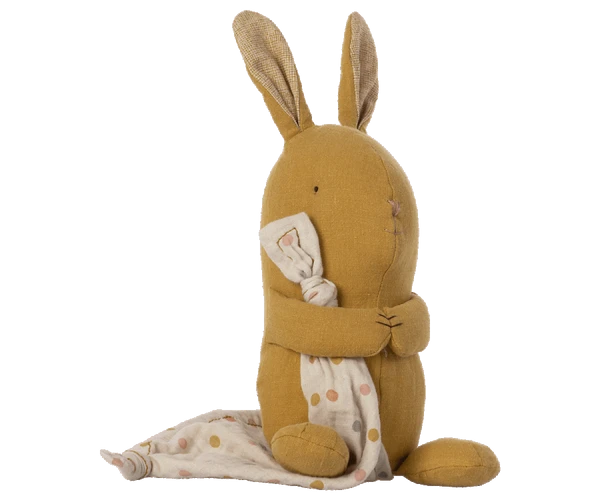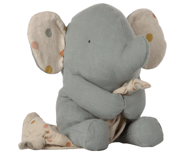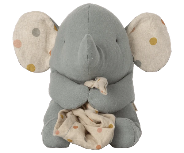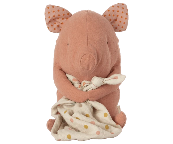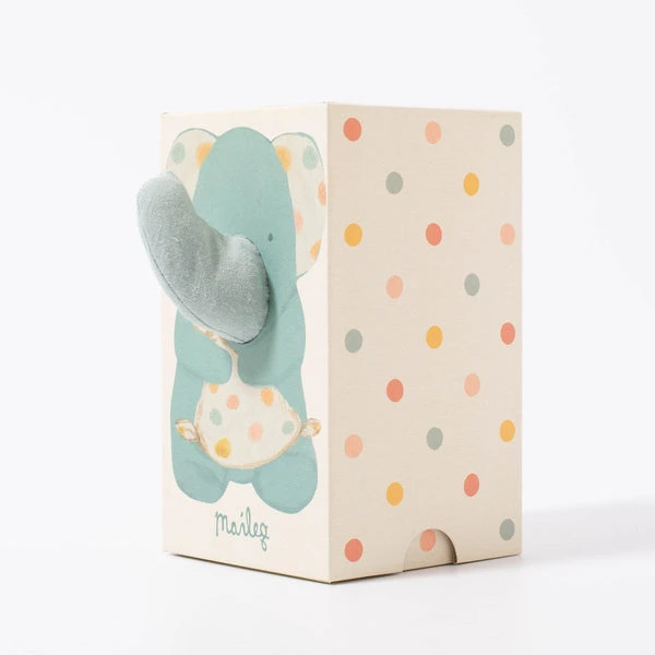 These sweet Maileg animals have a soft cuddle cloth and will play a calm lullaby when you pull the tail. Made in soft fabrics with unique prints and packed in a beautiful gift box they make for the most wonderful new baby gift. DETAILS A choice of three animals: Elephant, Rabbit and Pig Height:32 cm Suitable for all ages Wash:30°C Material:Cotton/Linen Filling:Recycled polyester/Pe Pellets WHAT WE LOVE Founded by mother and designer Dorthe Mailil, Maileg has become our go to brand of toys that merge modern Scandinavian design with storybook whimsy and meticulous attention to detail.