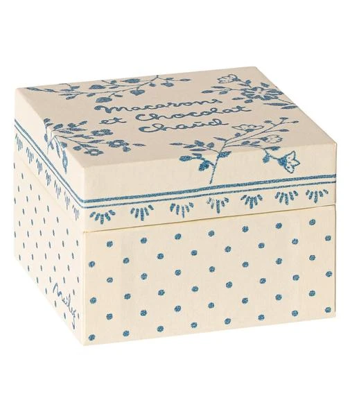 The delicous macarons on top of the nice hand painted cakestand – is a must have for every coffee table. The box also includes small decorative paper napkins – These you can use on the plate when serving. Product details Height : 5 cm Age: 3 years & up Washing instruction: Surface wash Material: Metal / Poly resin