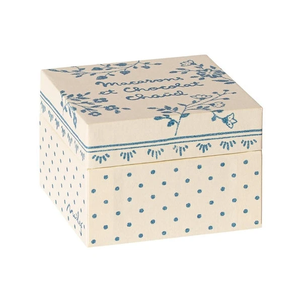 Maileg: Macarons Et Chocolat Chaud. The delicious macarons on top of the nice hand painted cake stand – is a must have for every coffee table. The box also includes small decorative paper napkins – These you can use on the plate when serving.Product detailsHeight: 5 cmAge: 3 years & upWashing instruction: Surface washMaterial: Metal / Poly ResinSee the rest of the collection here.
