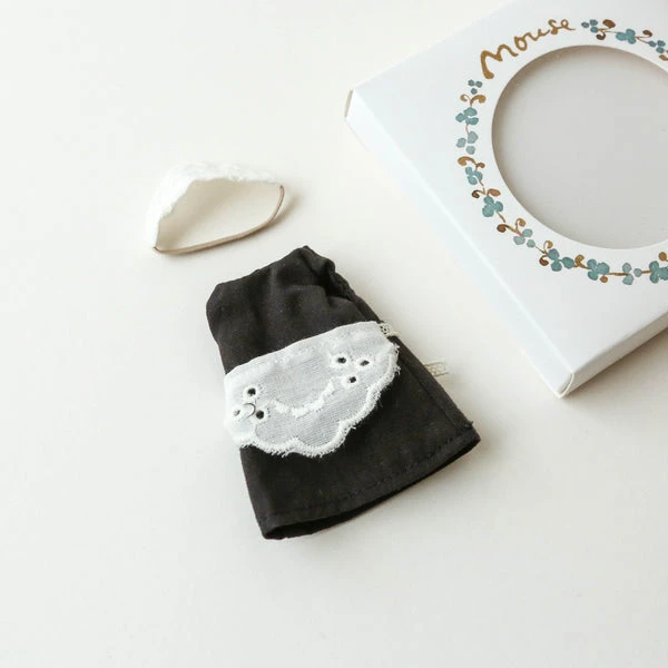 A classic set of maid clothes including a dress with apron and a headband. This set fits all mice in size of big brother and sister perfectly. Maileg is a brand of charming Danish-designed toys created to inspire our children’s favorite playtime stories. By bringing storybook whimsy to everyday moments, Maileg toys help children explore the pure and simple wonder of imagination. Beloved for their heartwarming personalities, Maileg toys show playfulness and charm in every last detail. Theirs is a timeless world filled with beautiful accessories and settings to be collected, cherished and shared with friends and family for generations. Size: Big sister/ brother Height: 9 cm Age: 3 YR + Wash: 30°C Material: Cotton Filling: –