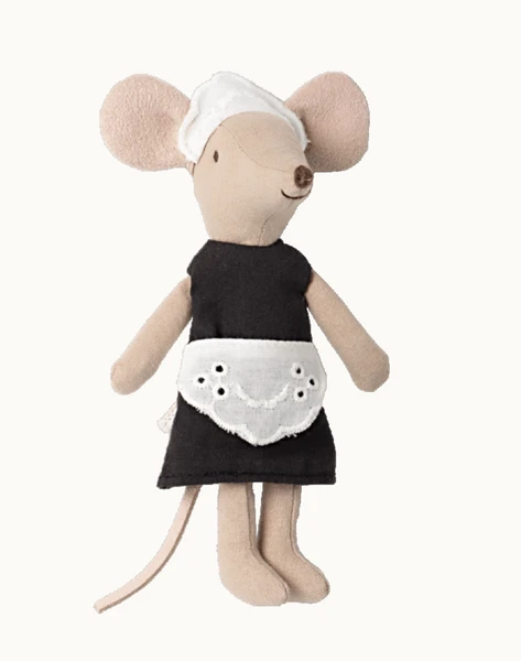 A classic set of maid clothes including a dress with apron and a headband. This set fits all mice in size of big brother and sister perfectly.
