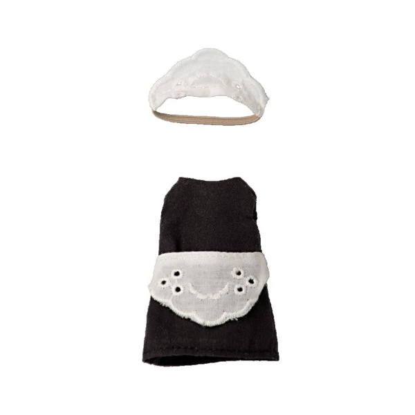 Maileg: Maid Mouse. This mouse will for sure be the perfect help in housekeeping. The mouse is classically maid dressed and ready to serve all guests. She has magnets in her hands so it is easier to hold the metal kitchen utensils. Height: 15cm Material: Cotton Filling: Recycled polyester/Pe Pellets Wash: 30 degrees C See the rest of the collection here.