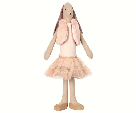 Skilfully crafted from 100% cotton, Dance Princess is beautifully dressed in a pink tutu with frilled hem, sparkly gold ballet pumps and a gorgeous pink fur gilet. Designed by award-winning Danish company Maileg, this delightful little pink rabbit with pink nose and soft, floppy ears has that timeless, nostalgic quality which makes Scandinavian toys so very desirable.