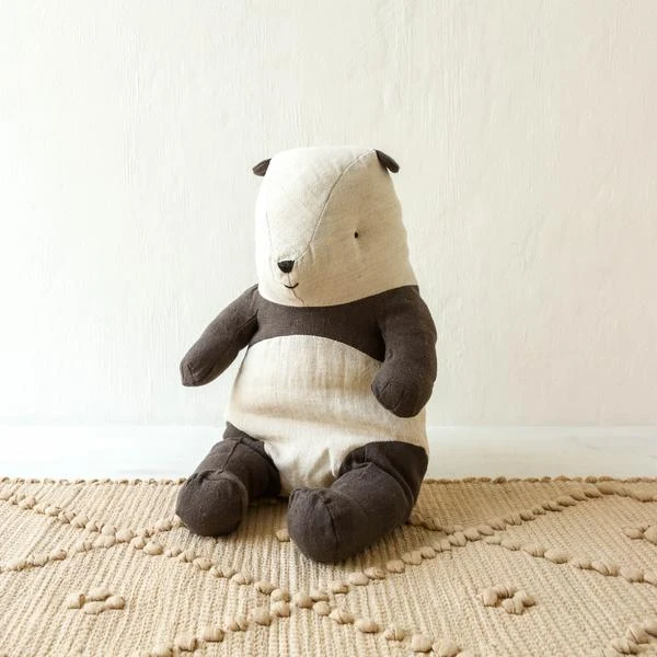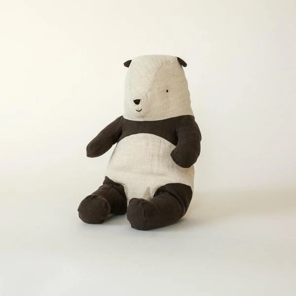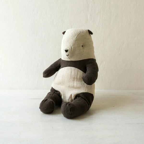 This Panda Bear is very lovable and likes to cuddle. He can also sit straight up because of the beans in the bottom. Maileg is a brand of charming Danish-designed toys created to inspire our children’s favorite playtime stories. By bringing storybook whimsy to everyday moments, Maileg toys help children explore the pure and simple wonder of imagination. Beloved for their heartwarming personalities, Maileg toys show playfulness and charm in every last detail. Theirs is a timeless world filled with beautiful accessories and settings to be collected, cherished and shared with friends and family for generations. 31cm high All ages Materials: Linen Filling: Recycled Polyester / Pe Pellets Wash at 30°C