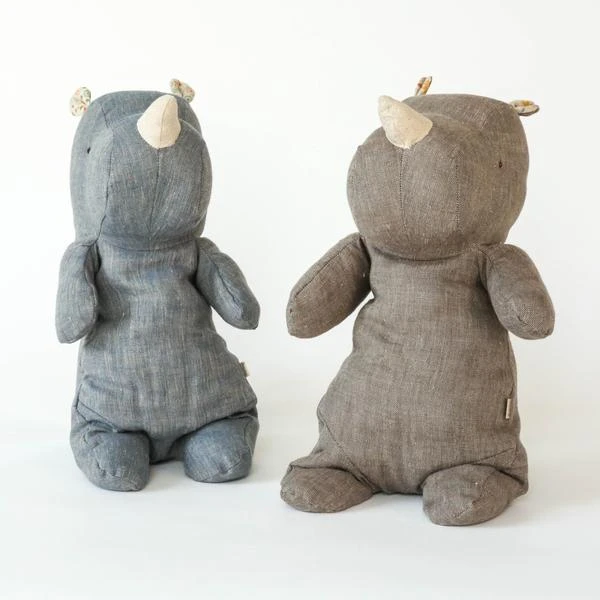 These rhinos are made of the softest linen, give the best hugs imaginable, and can sit all by themselves! Maileg is a brand of charming Danish-designed toys created to inspire our children’s favorite playtime stories. By bringing storybook whimsy to everyday moments, Maileg toys help children explore the pure and simple wonder of imagination. Beloved for their heartwarming personalities, Maileg toys show playfulness and charm in every last detail. Theirs is a timeless world filled with beautiful accessories and settings to be collected, cherished and shared with friends and family for generations. 30cm high All ages Materials: Linen Filling: Recycled Polyester / Pe Pellets Wash at 30°C