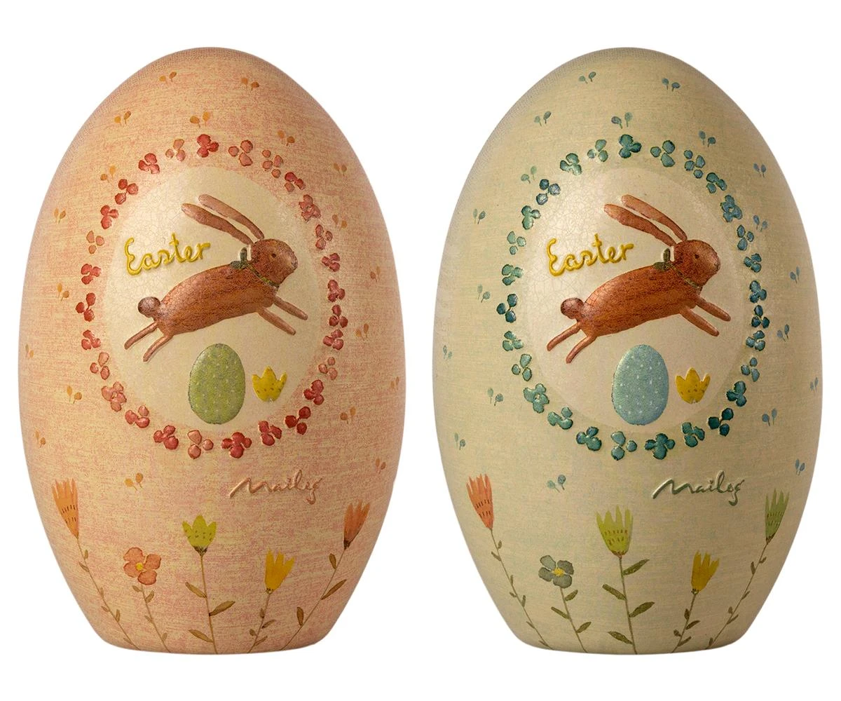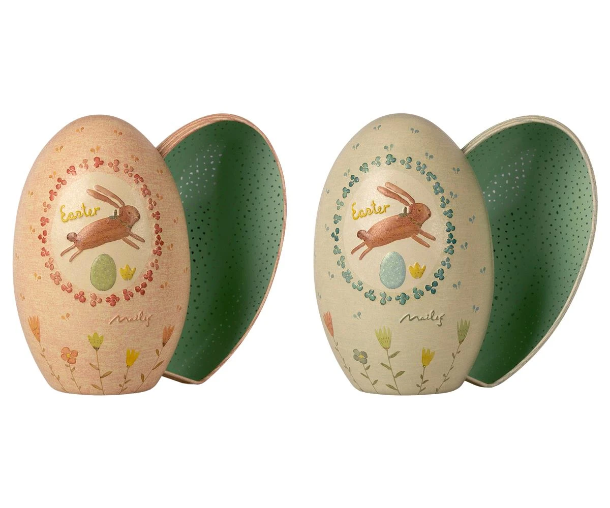 It is an old tradition to bring an easter egg as a present for the holidays. These metal eggs are decorated with Mailegs unique drawings and can be filled with small gifts. The metal eggs complies with the foodcertificate standard.