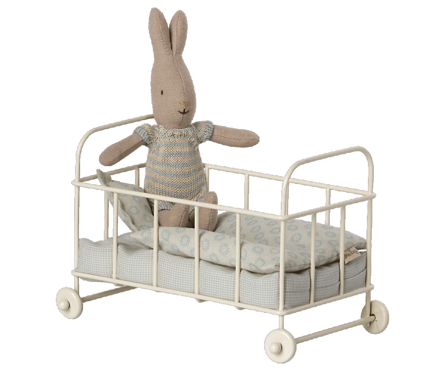 A cosy cot bed for you to tuck your little friends into after a long day of play. This gorgeous piece is the perfect addition to any growing Maileg collection. Made from metal with cotton bedding, it is a perfect fit for small mice or any of the Micro collection. Height- 10cm. Width- 16cm. Materials- Metal, Cotton, Polyester filling. Not suitable for children under 36mths.