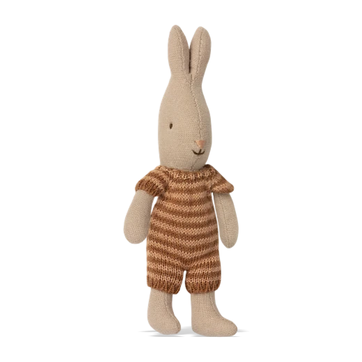Ready for playtime in a red knitted romper suit, the Micro Rabbit is the smallest family member from the award-winning Danish brand Maileg, but in spite of his diminutive proportions, he is still bursting with personality. The tiny rabbit is cute as a button with his pointy ears his striped outfit and petite enough to pop in your bag or pocket.