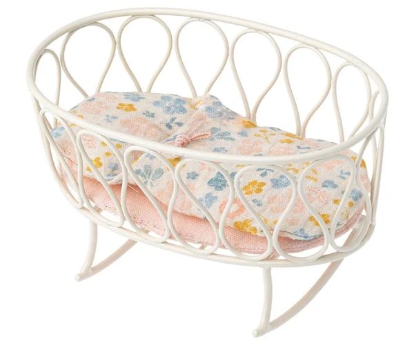 Micro Off White Cradle with Sleeping Bag Eine wunderschön gestaltete Wiege mit einem weichen Schlafsack im Inneren. Die Wiege besteht aus Metall und Sie können Ihr kleines Stofftier leicht in den Schlaf wiegen. Größe: Micro Höhe: 9 cm Alter: 3 Jahre und älter Waschen: Oberflächenwäsche Material: Metall / Baumwolle