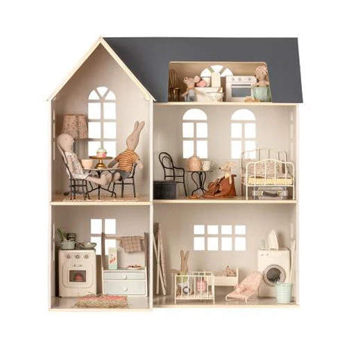 Exclusive wooden dollhouse. Perfect for mice, bunnies and all your Maileg friends. Personalize with your favorite Maileg furniture. Comes flat packed and is easy to assemble. Height : 31,1 in Age: 3 YR +.
