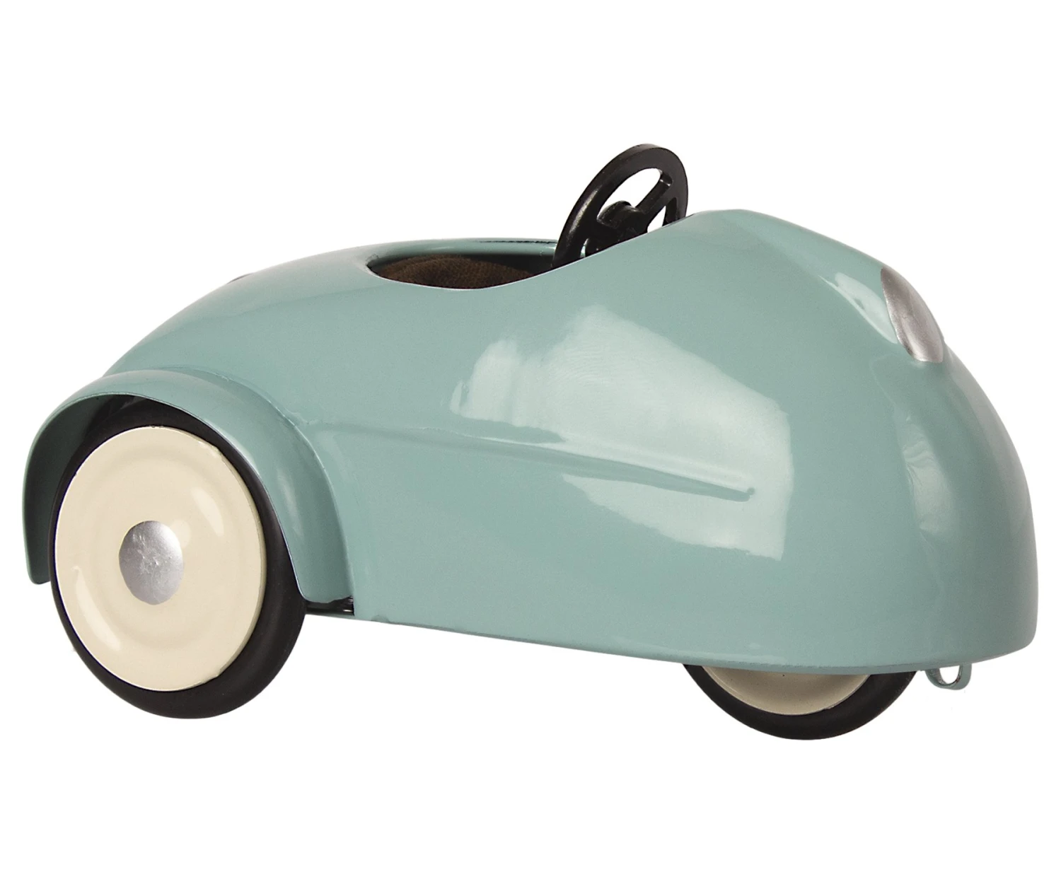 The vintage car is nicely decorated in blue. The seat is soft and will make the ride comfortable for the mouse. After every ride the car can be parked in the garage. A 3-piece playset for any child. Comes in 2 colours. Product details Size : Little sister/brother Height : 11 cm Width: 11 cm Age: 3 YR+ Washing instruction: 30°C Material: Wood/Metal/Cotton Filling: Polyester/Pe Pellets Maileg (pronounced My’lye) is a brand of charming Danish-designed toys created to inspire our children’s favourite playtime stories. By bringing storybook whimsy to everyday moments, Maileg toys help children explore the pure and simple wonder of imagination. Beloved for their heartwarming personalities, Maileg toys show playfulness and charm in every last detail. Theirs is a timeless world filled with beautiful accessories and settings to be collected, cherished and shared with friends and family for generations.
