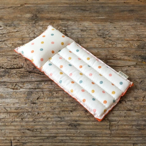 Vacation time. An air matress made in coated fabric for an authentic look. It is not water proof, so only play on dry ground… only in your imagination it can float on water. This set fits all mice sizes. Size: Mouse Height: 1 cm Width: 13 cm Age: 3 YR + Wash: 30°C Material: Cotton Filling: Polyester