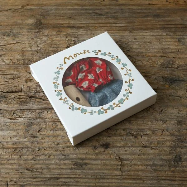 The Mom mouse set contains a shirt, skirt, and a fun bag with the beautiful detail of small cheese holes. Maileg is a brand of charming Danish-designed toys created to inspire our children’s favorite playtime stories. By bringing storybook whimsy to everyday moments, Maileg toys help children explore the pure and simple wonder of imagination. Beloved for their heartwarming personalities, Maileg toys show playfulness and charm in every last detail. Theirs is a timeless world filled with beautiful accessories and settings to be collected, cherished and shared with friends and family for generations. 1 cm heigh, 9 cm width Size: Big sister/brother Age: 3+ Recommended age 3+ Materials: Cotton Wash at 30°C