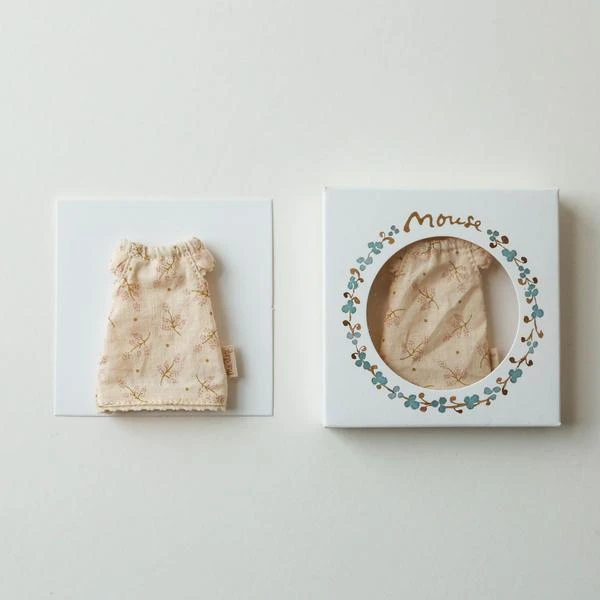 Dress your big sister mouse for a good night sleep or a cosy pyjamas party with this nightgown. Maileg is a brand of charming Danish-designed toys created to inspire our children’s favorite playtime stories. By bringing storybook whimsy to everyday moments, Maileg toys help children explore the pure and simple wonder of imagination. Beloved for their heartwarming personalities, Maileg toys show playfulness and charm in every last detail. Theirs is a timeless world filled with beautiful accessories and settings to be collected, cherished and shared with friends and family for generations. 7 cm heigh Size: Big sister Age: All ages Recommended age 3+ Materials: cotton Wash at 30°C