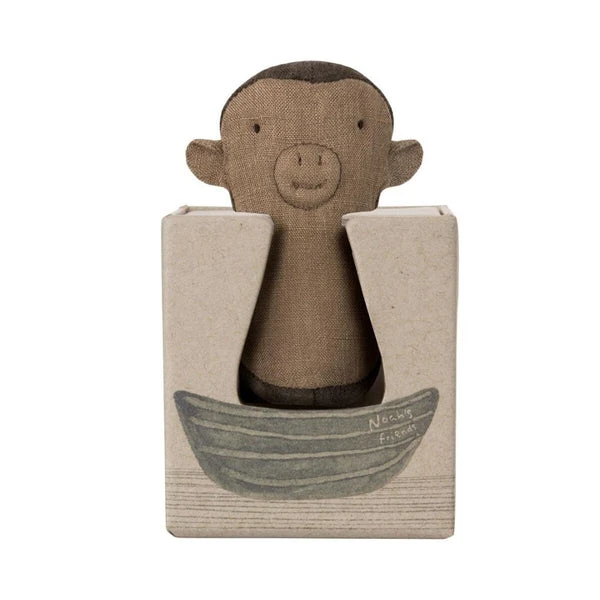 Maileg: Noah’s Friends – Monkey Rattle. Introducing Noah’s friends! These cute little rattles are the perfect baby gift and a great way to teach children about Noah and his animals. Collect all these adorable rattles and store them in Noah’s Ark!Height : 12 cmAge: All agesWashing instruction: 30 degreesMaterial: LinenSee the rest of the collection here.