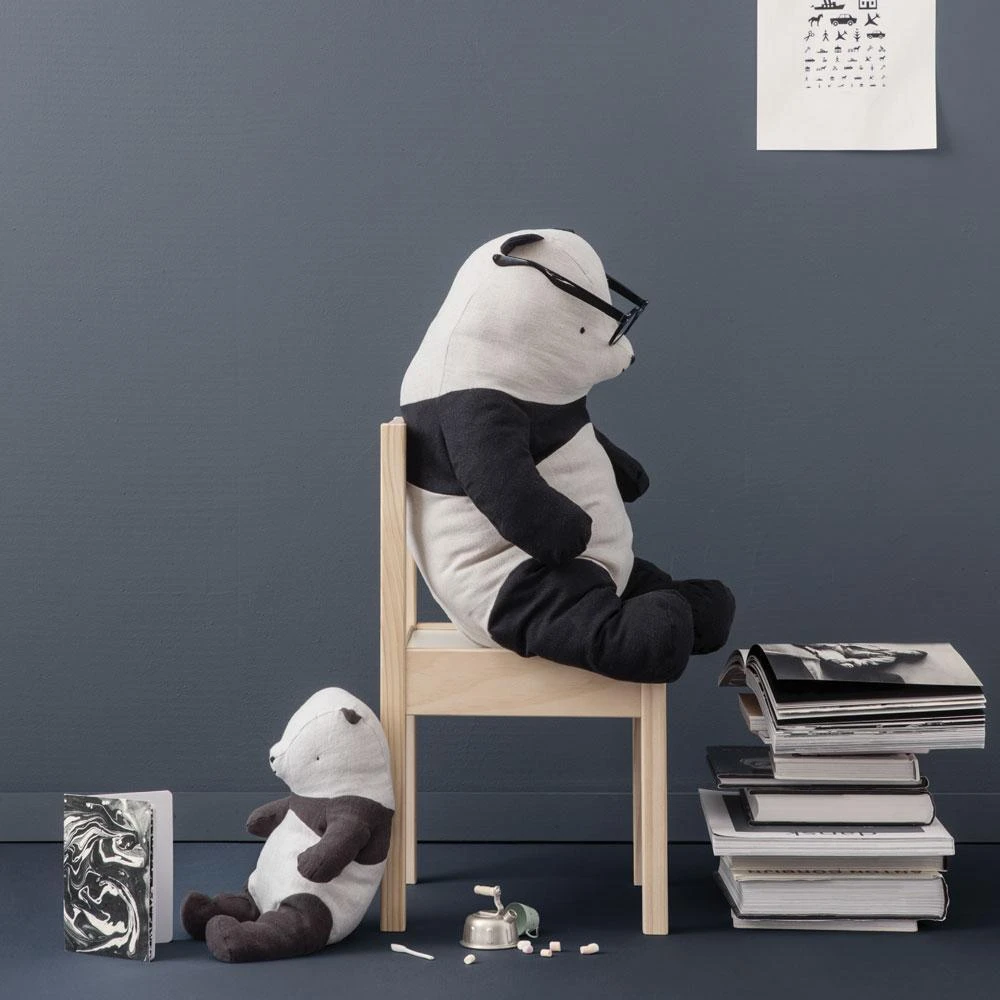 Introducing a new Maileg favorite! This Panda Bear is very lovable and likes to cuddle. He can also sit straight up because of the beans in the bottom. Size: Medium Height: 31 cm Age: All ages Washing instruction: 30 degrees Material: Linen