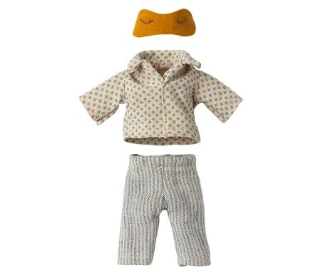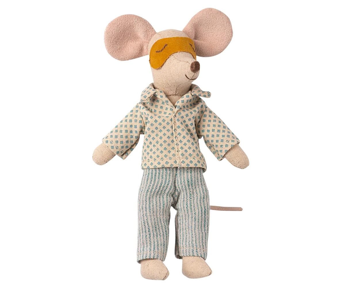 El pijama tan suave asegurará que el papá ratón tenga una buena noche de sueño y la máscara para los ojos mantendrá la luz fuera.