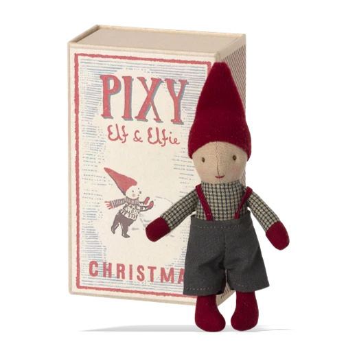 Designed by award-winning Danish brand Maileg, Pixy Ef has arrived in good time for the festive season and is a very welcome addition to this most charming family of Nordic characters. Beautifully crafted from cotton and linen, the vintage style Pixy comes in his own little matchbox with a cosy knitted blanket and tiny checked pillow. Elf is perfectly dressed for the winter in his heavy grey overalls with matching red boots and hat. He is more than ready to have some fun, but just watch out, these Scandinavian pixies do tend to be a little naughty at times.