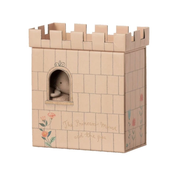 Maileg: Princess And The Pea Big Sister Mouse. Once upon a time… Playset inspired by the famous fairy tale Princess and the pea. This set includes a castle with mattresses, a pea and a princess mouse.Product detailsHeight: 17 cmWidth: 15cmAge: All agesWash: 30°CMaterial: Cotton/PolyesterFilling: Recycled polyesterSee the rest of the collection here.