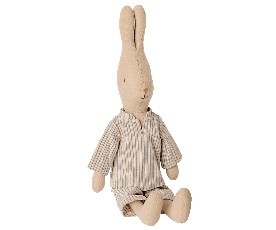 Dress your bunny or rabbit for a good night`s sleep or a cosy pyjamas party with this striped pyjamas. It fits size 2. Product details Size: Bunny/Rabbit 2 Height: 0 cm Age: 3 YR + Washing instruction: 30°C Material: Cotton Maileg (pronounced My’lye) is a brand of charming Danish-designed toys created to inspire our children’s favourite playtime stories. By bringing storybook whimsy to everyday moments, Maileg toys help children explore the pure and simple wonder of imagination. Beloved for their heartwarming personalities, Maileg toys show playfulness and charm in every last detail. Theirs is a timeless world filled with beautiful accessories and settings to be collected, cherished and shared with friends and family for generations.