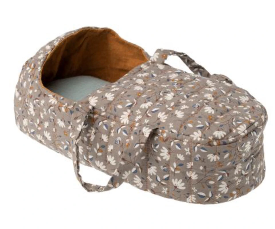A soft quilted carry cot for your small friends. It comes with a small pillow inside. The carry cot is made with many nice details and as always in soft fabrics that will make all the soft toys sleep tight.